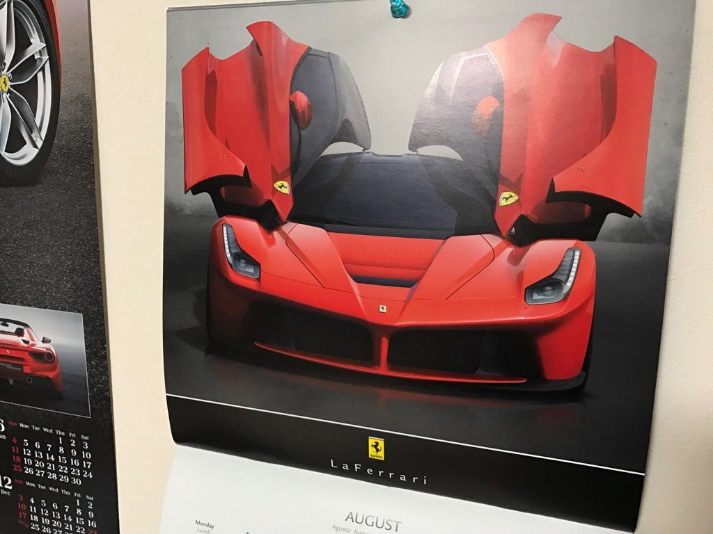 急にフェラーリというかスーパーカーのカレンダーが欲しくなり。去年のをポスター代わりに飾ってたのですが、さすがにまともなカレンダーが無いと不便なことに気づき…。購入することに。