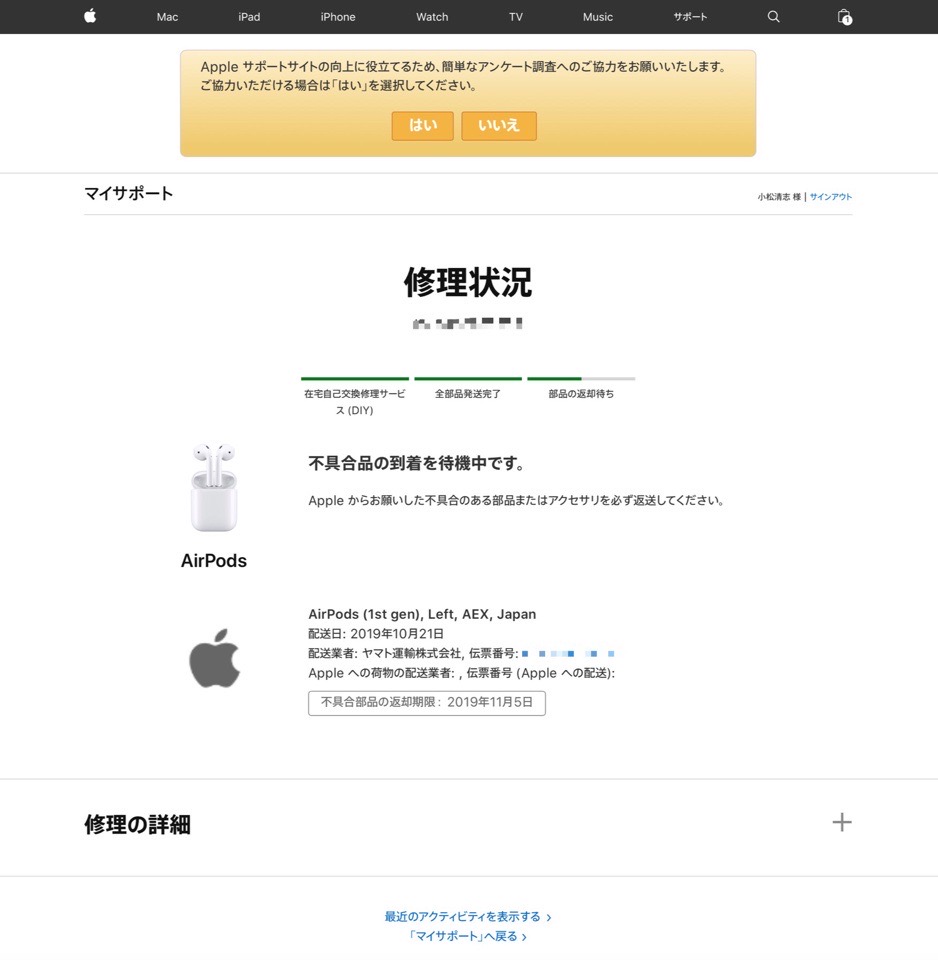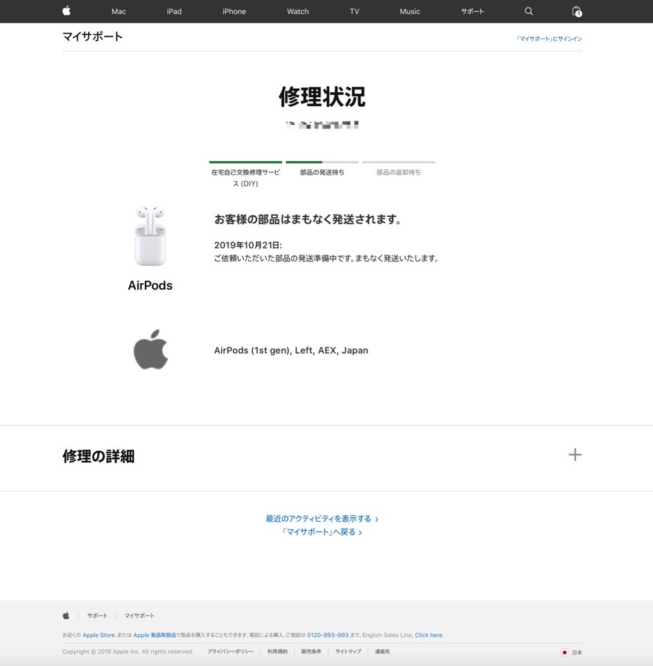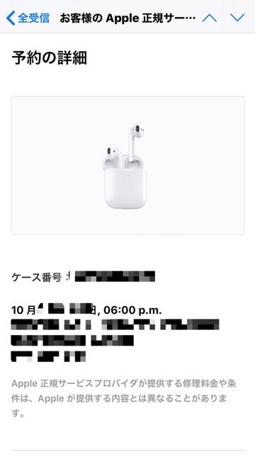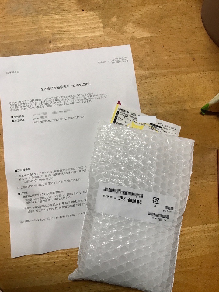 バッテリーの交換だけの場合は、片耳づつ修理(交換?)ができるようだった。