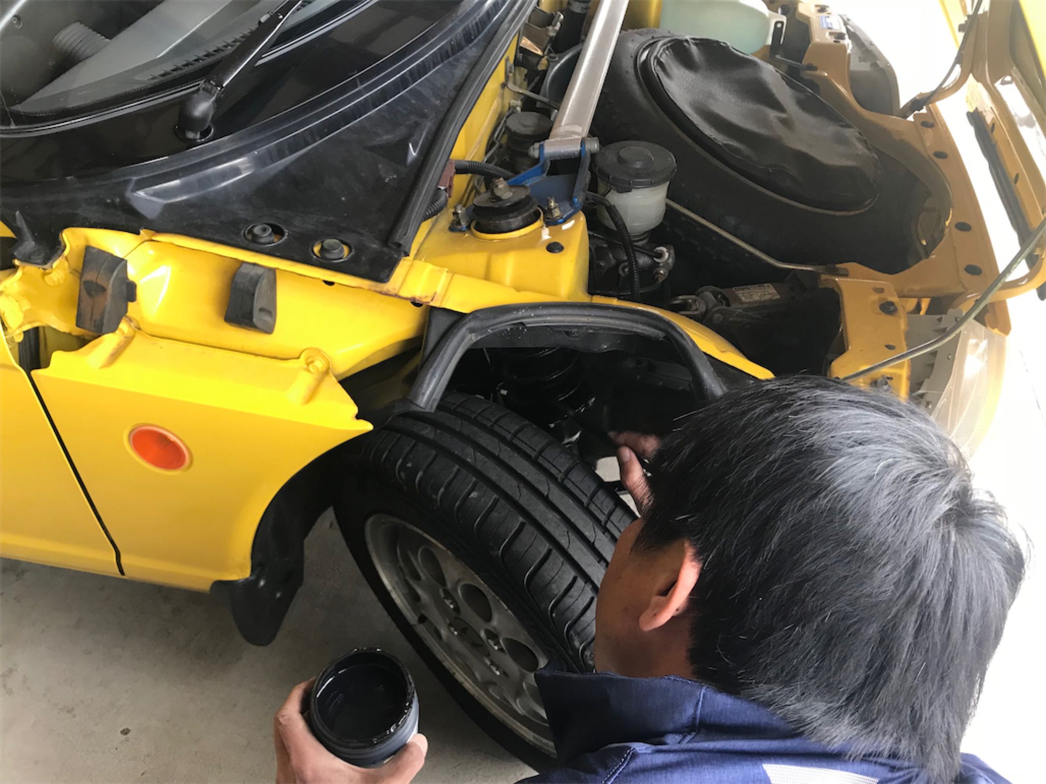 駐車スペースには、昨晩メッセージをくれた三河ナンバーの黄ビート さんが停まっていました(^_^)