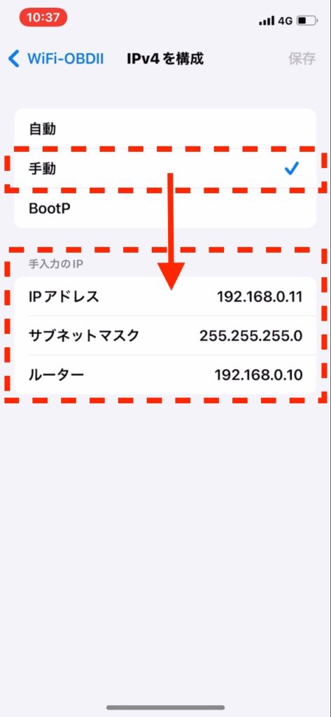 手入力のIPというところに、順に入力していきます。