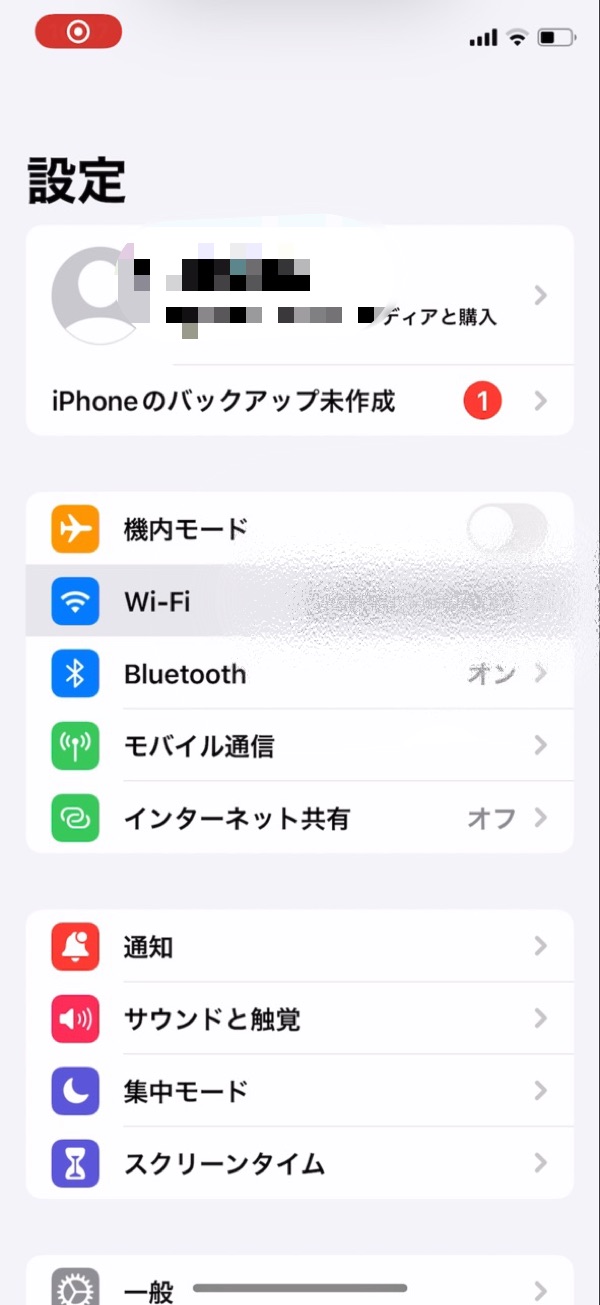 iPhoneの設定(歯車マークのアイコン)をタップすると以下の画面になります。