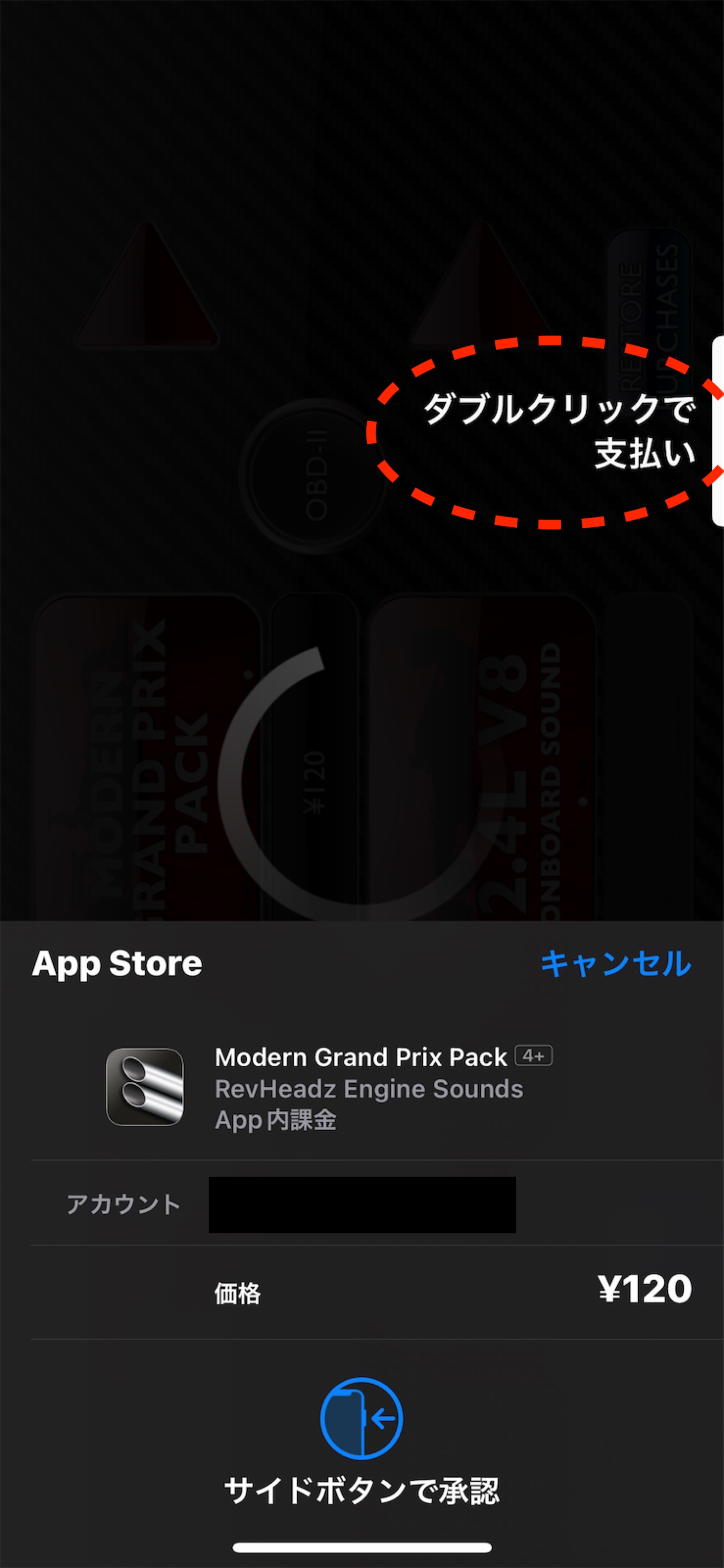 スマホ(この場合はiPhone XS)の決済を承認することで購入可能です。