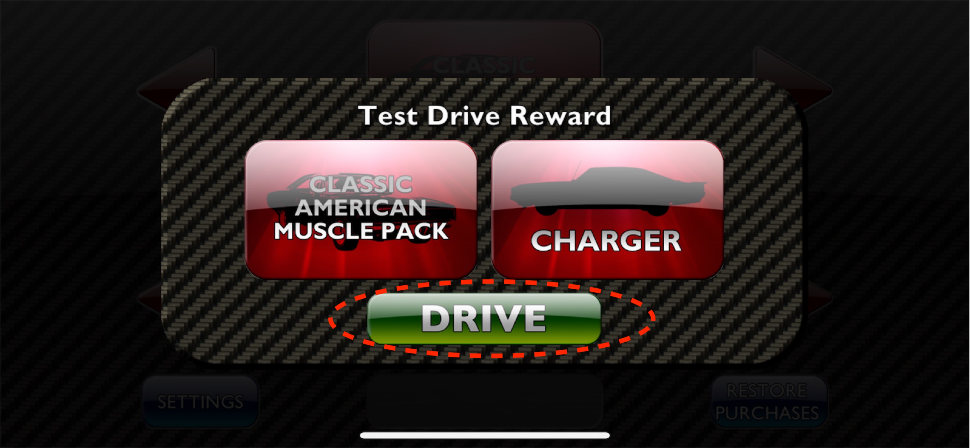 ・すると、ランダムに車両が1台(○○パックの)だけ表示されますので『Drive』をタップし遊びます。