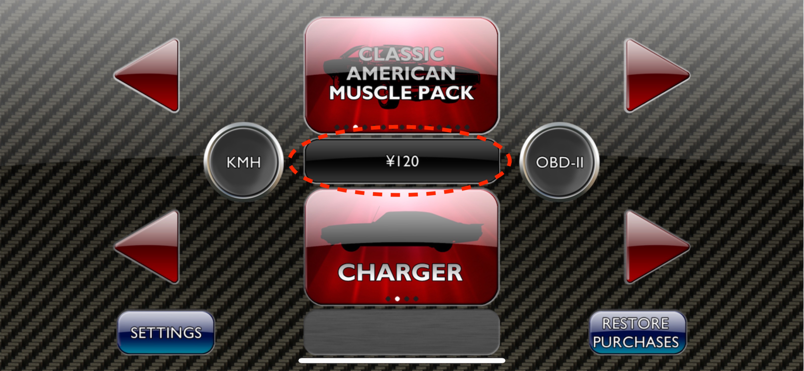 ・希望のパックで、購入したい場合は中央の¥120(赤い波線で囲んだボタン)をタップし、購入します。