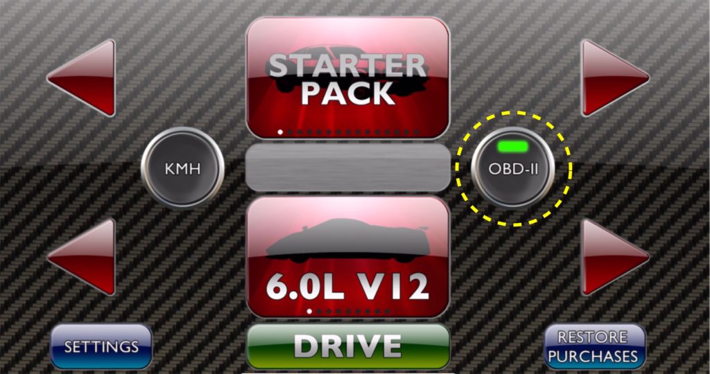 最初の画面に戻ると、OBDーⅡのボタンに緑色のインジケーターが光り、