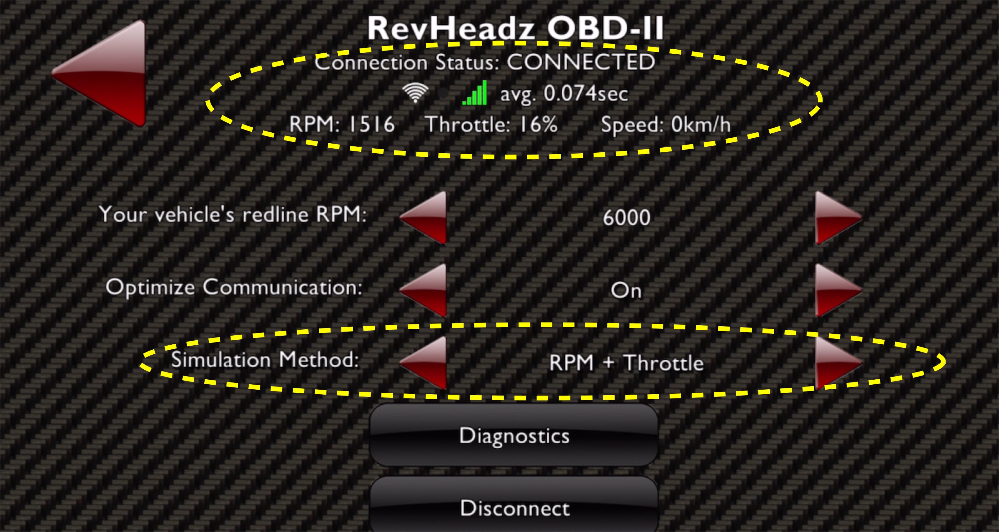 下の黄色い囲みの中では、エンジン回転と、スロットル開度でアプリのエンジン音と同期するようです。