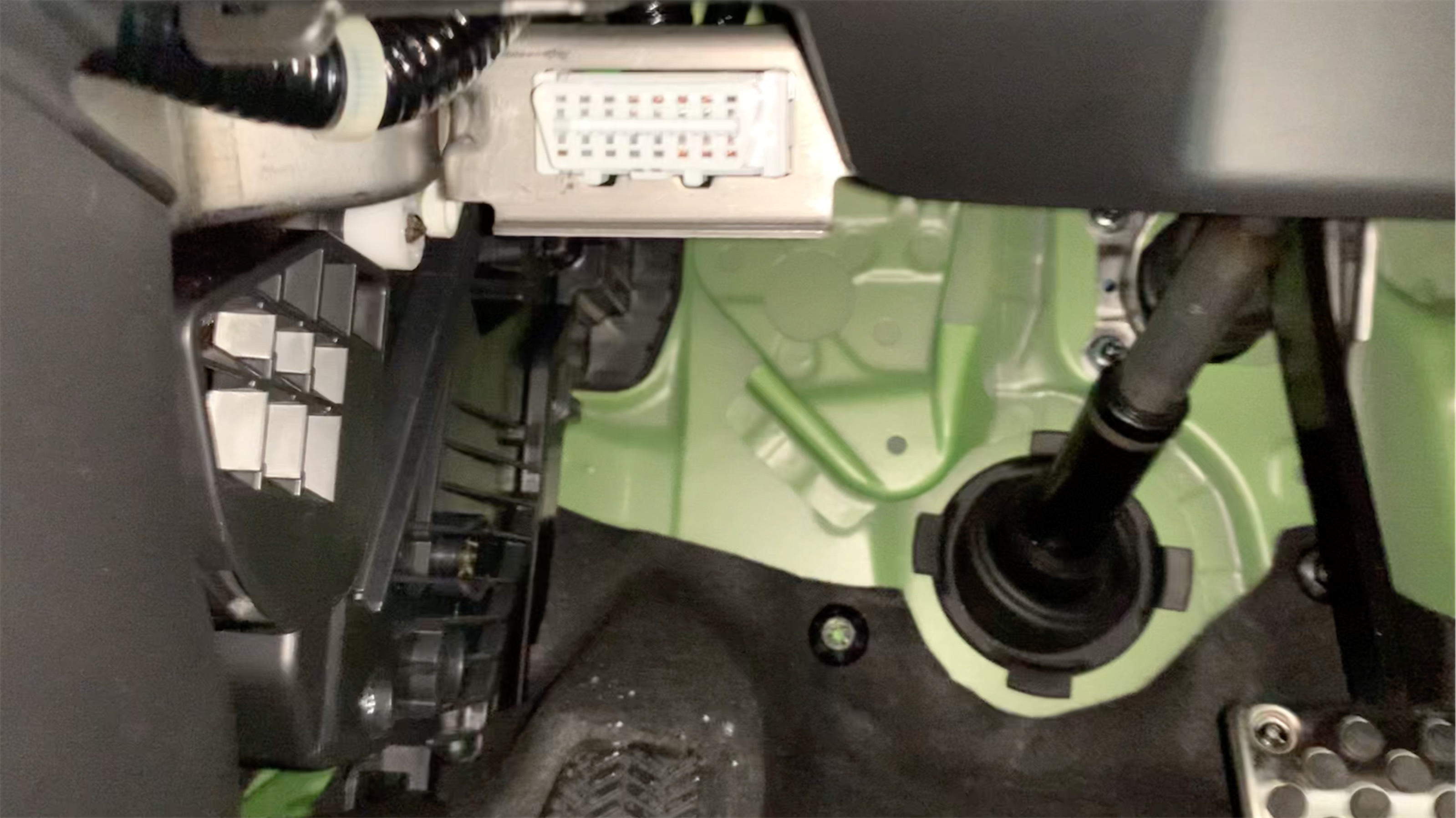S660の場合は、運転席左膝付近のインパネ下部にOBDコネクタが設置されています。