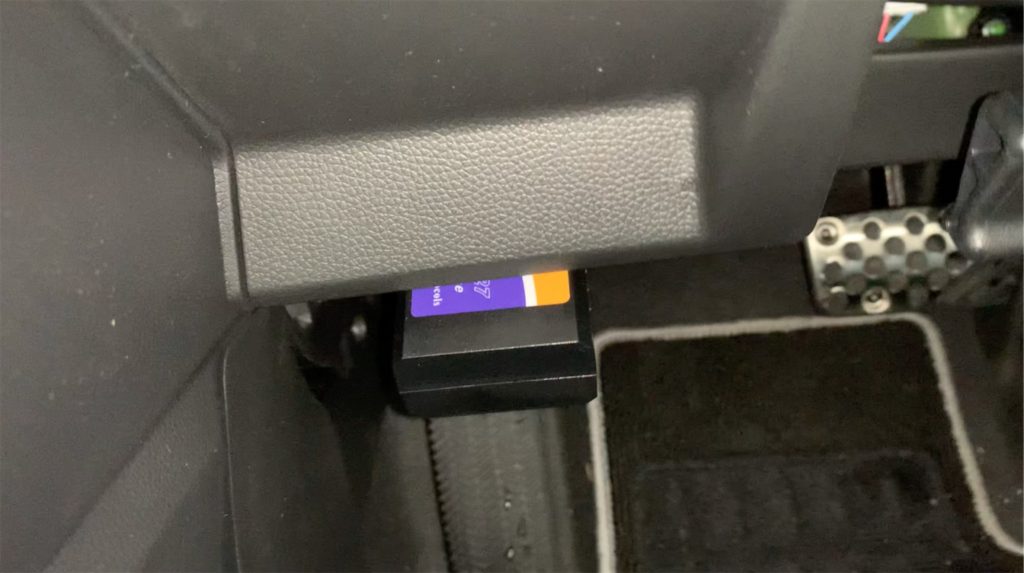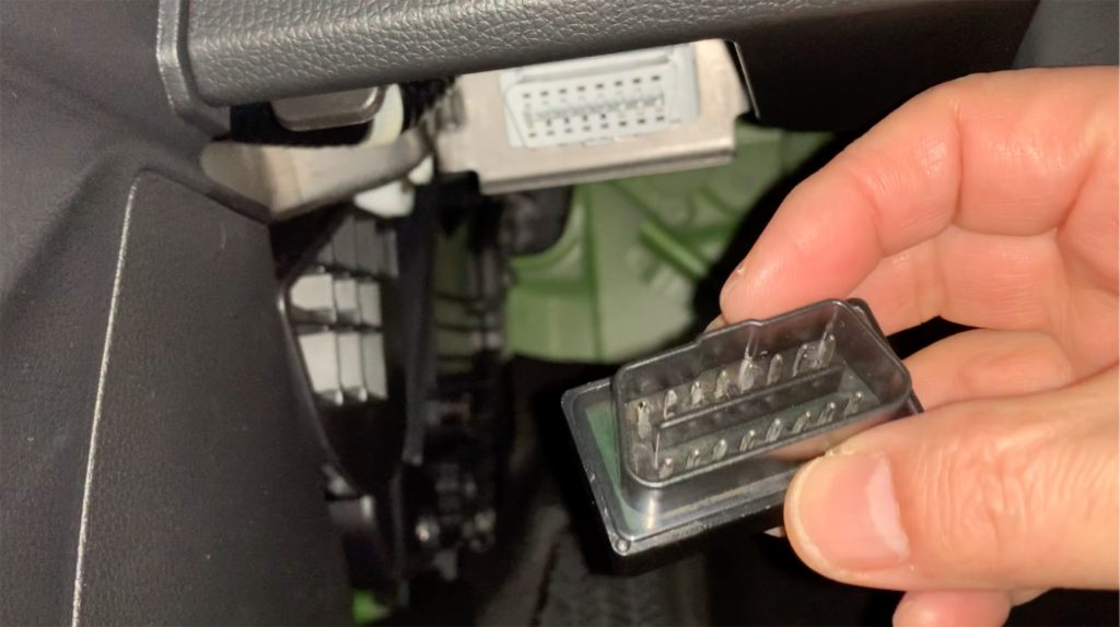 OBD2のアダプターをあらかじめ購入しておき、車両にセットします。
