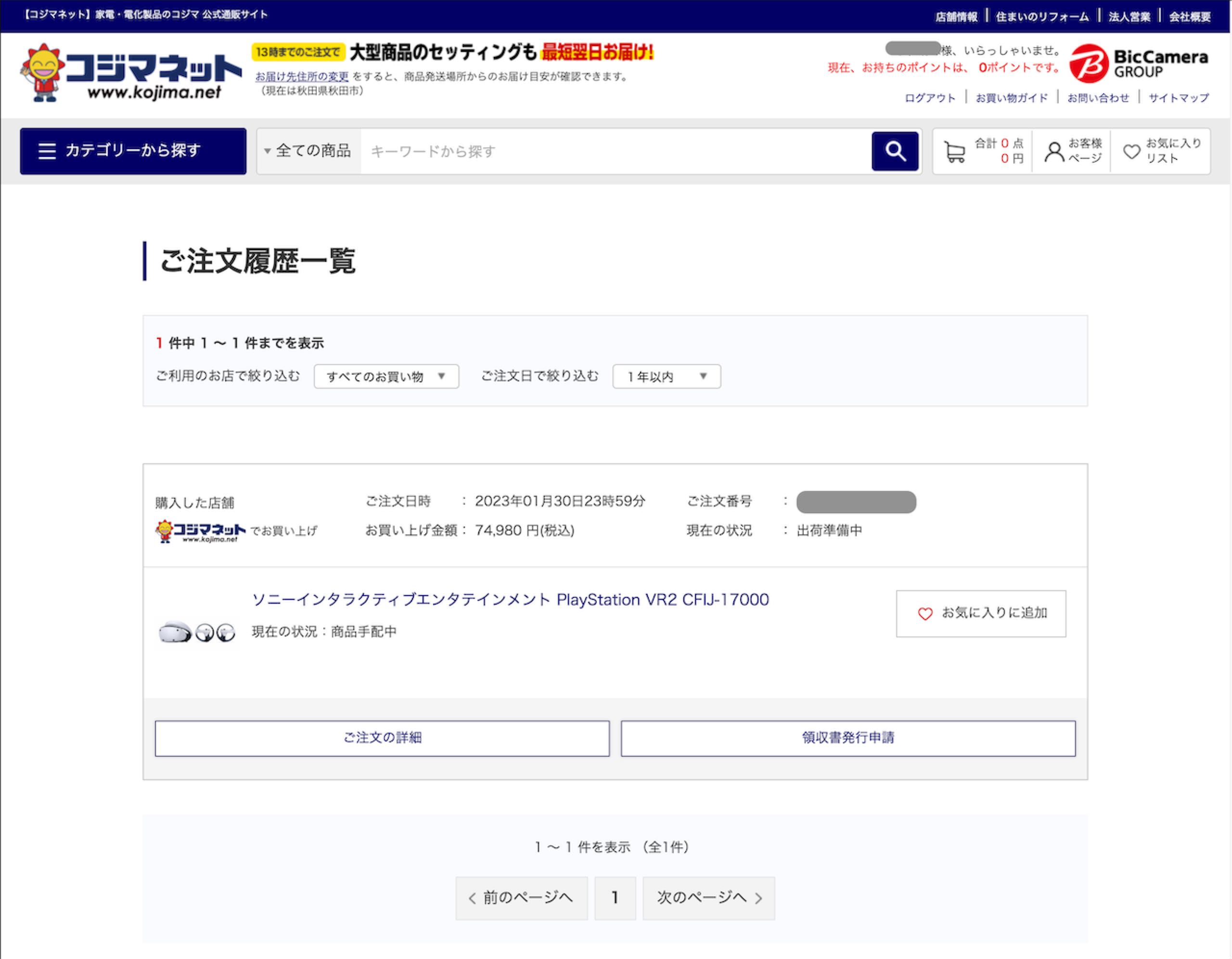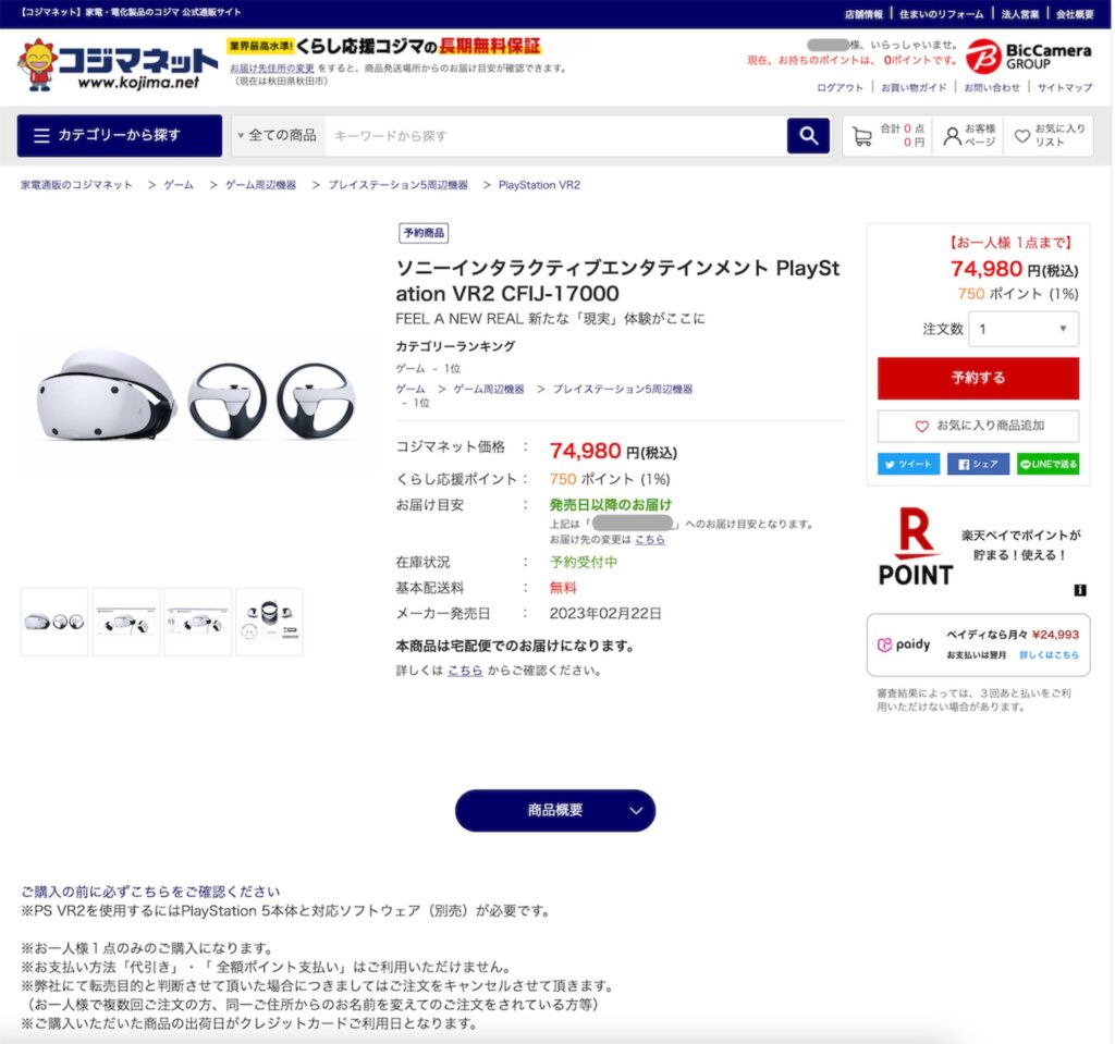 価格が価格なので、少し悩みましたがコジマネットで今回は購入してみました。