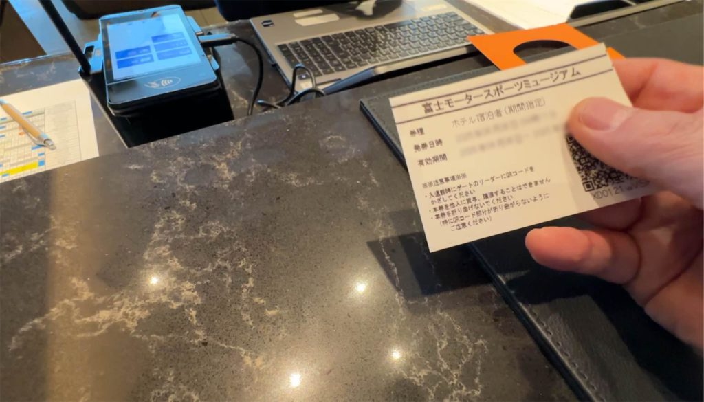 ホテル宿泊者には、滞在中は何度でもサーキット内に出入りできるパスを頂ける。頂いたパスはルームミラーに下げて置けば、東西ゲートから、すんなり入場できる。